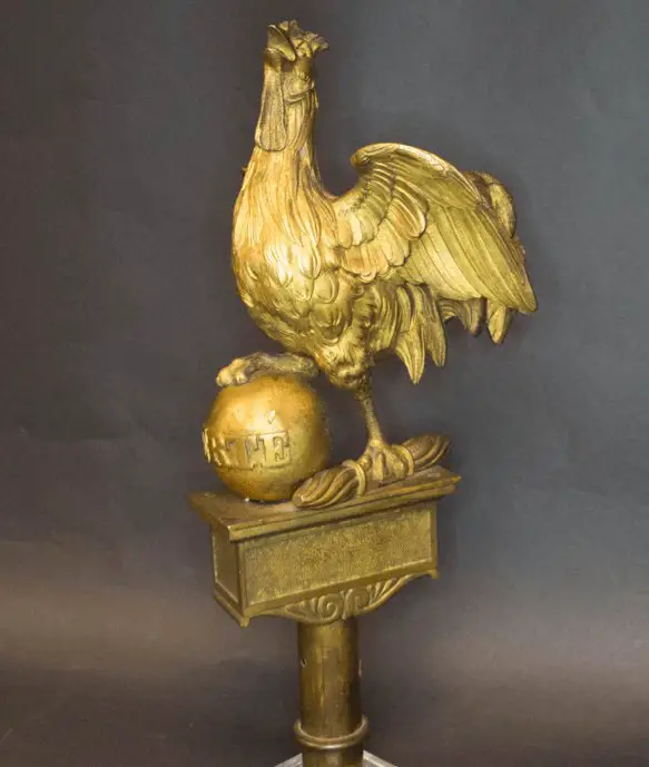 Durant l’Antiquité, le coq, auquel il est prêté des qualités de bravoure, de virilité et de vigilance, est un attribut de plusieurs dieux romains (Jupiter, Mars, Apollon ou Mercure).