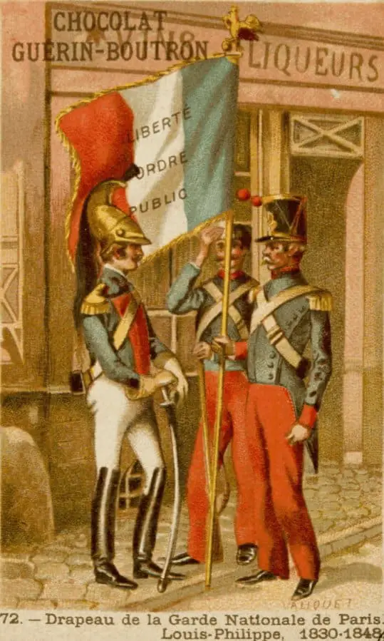 Les « Trois Glorieuses » de 1830 vont réhabiliter l’image du coq français. Louis-Philippe, signe une ordonnance indiquant que le coq doit figurer sur les drapeaux et les boutons d’uniformes de la garde nationale.
